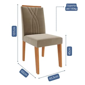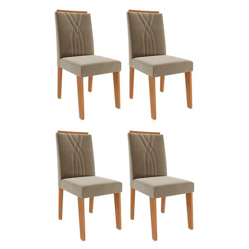 Conjunto 4 Cadeiras Nicole - Cimol Móveis O Conjunto de Cadeiras Nicole une sofisticação e conforto para compor sua sala de jantar com elegância. Sua estrutura em MDF com acabamento em pintura UV garante resistência e durabilidade. O assento revestido em tecido e a espuma de alta densidade proporcionam máximo conforto. O encosto com detalhes bordados e a moldura em MDF com acabamento em laca agregam um toque refinado ao design. Com pés em MDF e capacidade para suportar até 100kg, é a escolha perfeita para quem busca estilo e qualidade.