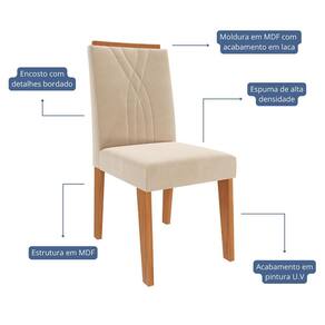 Conjunto 4 Cadeiras Nicole - Cimol Móveis O Conjunto de Cadeiras Nicole une sofisticação e conforto para compor sua sala de jantar com elegância. Sua estrutura em MDF com acabamento em pintura UV garante resistência e durabilidade. O assento revestido em tecido e a espuma de alta densidade proporcionam máximo conforto. O encosto com detalhes bordados e a moldura em MDF com acabamento em laca agregam um toque refinado ao design. Com pés em MDF e capacidade para suportar até 100kg, é a escolha perfeita para quem busca estilo e qualidade.