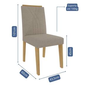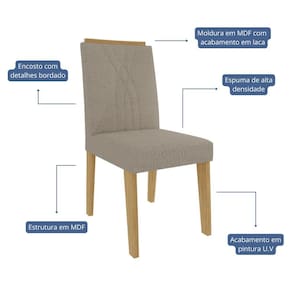 Conjunto 4 Cadeiras Nicole - Cimol Móveis O Conjunto de Cadeiras Nicole une sofisticação e conforto para compor sua sala de jantar com elegância. Sua estrutura em MDF com acabamento em pintura UV garante resistência e durabilidade. O assento revestido em tecido e a espuma de alta densidade proporcionam máximo conforto. O encosto com detalhes bordados e a moldura em MDF com acabamento em laca agregam um toque refinado ao design. Com pés em MDF e capacidade para suportar até 100kg, é a escolha perfeita para quem busca estilo e qualidade.