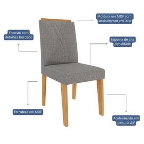 O Conjunto de Cadeiras Nicole une sofisticação e conforto para compor sua sala de jantar com elegância. Sua estrutura em MDF com acabamento em pintura UV garante resistência e durabilidade. O assento revestido em tecido e a espuma de alta densidade proporcionam máximo conforto. O encosto com detalhes bordados e a moldura em MDF com acabamento em laca agregam um toque refinado ao design. Com pés em MDF e capacidade para suportar até 100kg, é a escolha perfeita para quem busca estilo e qualidade.