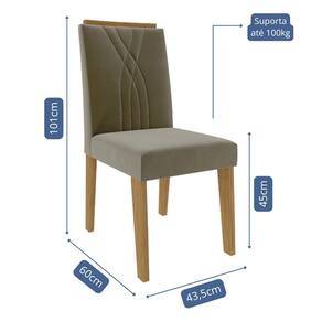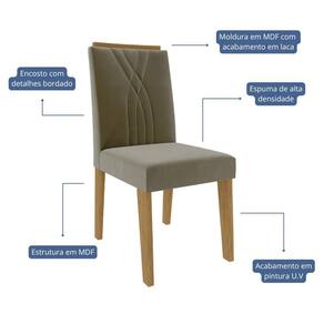 Conjunto 4 Cadeiras Nicole - Cimol Móveis O Conjunto de Cadeiras Nicole une sofisticação e conforto para compor sua sala de jantar com elegância. Sua estrutura em MDF com acabamento em pintura UV garante resistência e durabilidade. O assento revestido em tecido e a espuma de alta densidade proporcionam máximo conforto. O encosto com detalhes bordados e a moldura em MDF com acabamento em laca agregam um toque refinado ao design. Com pés em MDF e capacidade para suportar até 100kg, é a escolha perfeita para quem busca estilo e qualidade.