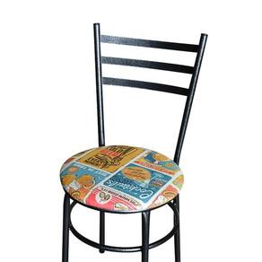 Conjunto 4 Cadeiras Para Cozinha Epoxi Preta Craqueada Assento Floral Cor:happy Hour