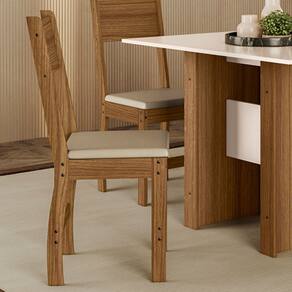A estrutura combina MDF e MDP com acabamento em pintura UV, com maior durabilidade e facilidade na limpeza. As travas de reforço oferecem ainda mais sustentação e o acabamento das bordas em PS as torna mais resistentes. Os assentos com espuma D11 são revestidos em courvin sintético de alta resistência, garantindo fácil manutenção e conforto.