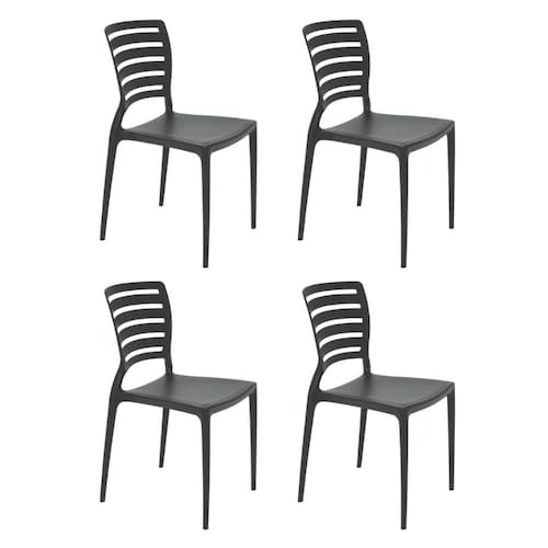 Conjunto de 4 Cadeiras Sofia em Polipropileno e Fibra de Vidro Preta Tramontina