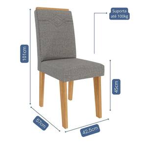 Conjunto 4 Cadeiras Taís Nature/linho Grafite - Cimol Móveis Nature/linho Grafite Conjunto 4 Cadeiras Taís - Cimol Móveis Com um design sofisticado e elegante, o Conjunto de Cadeiras Taís é ideal para compor sua sala de jantar com charme e conforto. Sua estrutura em MDF com pintura UV garante durabilidade, enquanto o assento revestido em tecido e a espuma de alta densidade oferecem máximo aconchego. O encosto com detalhes bordados e a moldura em MDF com acabamento em laca adicionam um toque refinado ao visual. Com pés em MDF e capacidade para suportar até 100kg, é a escolha perfeita para quem valoriza qualidade e estilo. ESPECIFICAÇÕES: - Estrutura em MDF - Pintura UV - Revestimento em tecido - Espuma de alta densidade - Encosto com detalhes bordados - Moldura em MDF com acabamento em laca - Pés em MDF - Cada cadeira tem capacidade para suportar até 100kg