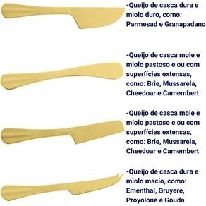 onjunto 4 facas para Queijo de Aço Inox Positano Dourada - Lyor