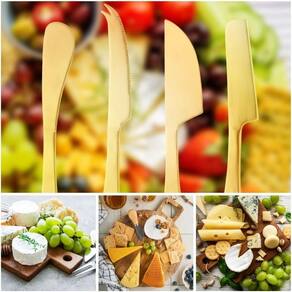 Conjunto 4 Facas para Queijo de Aço Inox Positano Dourada - Lyor Aprecie seus queijos com sofisticação usando o Conjunto 4 Facas para Queijo de Aço Inox Positano Dourada da Lyor. Este conjunto é a escolha ideal para os amantes de queijos que procuram unir funcionalidade e elegância em utensílios de alta qualidade.