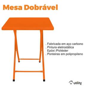 Conjunto 4 Mesa Dobrável Bar Restaurante Aço Ferro Cor: Laranja Bem vindo à UTILITY Somos uma loja online especializada em utilidades PET, utilidades Domésticas e produtos Pegue e Faça você mesmo Descrição do produto: A mesa de aço dobrável possui ótimo custo beneficio, é de fácil manuseio e ocupa pouco espaço, excelente para uso em áreas de churrasqueiras, lanchonete, bares e também em restaurantes. Trazendo praticidade ao seu ambiente, seus convidados e clientes. Produzido em aço carbono e pintura epóxi conferindo mais resistência ao produto. Não perca tempo, adquira já o seu. Deixe o seu ambiente mais prático e aconchegante. Detalhes do produto: Mesa aberta: Altura: 74 cm Largura: 58 cm Profundidade: 58 cm Mesa fechada: Altura: 92,3 cm Largura: 58 cm Profundidade: 8 cm Peso: 3,955 kg Conteúdo da : 04 Mesas de 6 meses Aguardamos seu retorno Obrigado