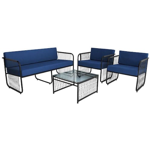 Este elegante conjunto foi desenvolvido para transformar seu ambiente interno com sofisticacao e conforto. Com estrutura em aco carbono de alta qualidade e acabamento em fibra sintetica, oferece resistencia e durabilidade para suportar as diversas ocasioes, ideal para areas como gourmet, externas, de churrasqueira, recepcao, ediculas e muito mais.