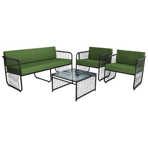 Este elegante conjunto foi desenvolvido para transformar seu ambiente interno com sofisticacao e conforto. Com estrutura em aco carbono de alta qualidade e acabamento em fibra sintetica, oferece resistencia e durabilidade para suportar as diversas ocasioes, ideal para areas como gourmet, externas, de churrasqueira, recepcao, ediculas e muito mais.
