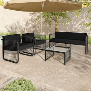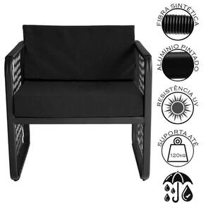 Este elegante conjunto foi desenvolvido para transformar seu ambiente externo com sofisticacao e conforto. Com estrutura em aluminio de alta qualidade e acabamento em fibra sintetica, oferece resistencia e durabilidade para suportar as diversas condicoes climaticas, ideal para areas como gourmet, externas, de churrasqueira, ediculas e muito mais.