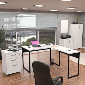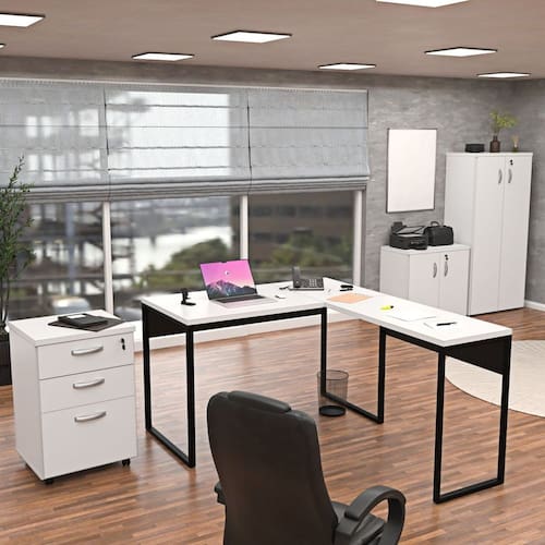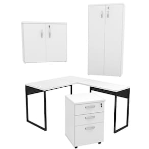 Transforme seu escritório com o Conjunto Armários, Gaveteiro e Mesa industrial NetMobil!