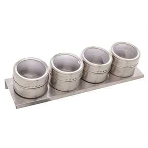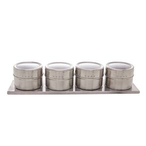 Conjunto 4 Porta Temperos de Aço Inox com Suporte Imantado 80ml - Lyor