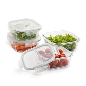 CONJUNTO DE POTES HERMÉTICOS DE VIDRO 4 UNIDADES ELECTROLUX Perfeitos para organizar e preservar os alimentos frescos por mais tempo