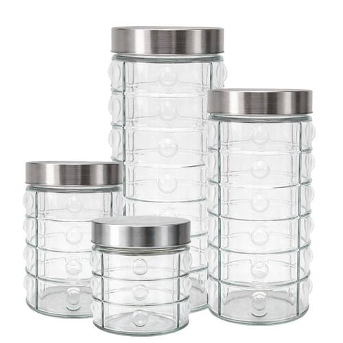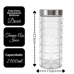 O Jogo de potes de vidro redondo transparente com tampa rosqueável em aço inox é uma peça prática, elegante e versátil para a organização da cozinha. Ideal para armazenar mantimentos, ele une a beleza do vidro transparente com a modernidade do acabamento em aço inox escovado, trazendo mais sofisticação para bancadas, prateleiras e armários.