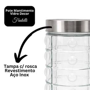 Com design Point e estrutura em vidro reforçado, este porta mantimento é perfeito para conservar e visualizar com facilidade itens como café, açúcar, biscoitos, grãos, castanhas, doces, chás, temperos e diversos outros alimentos secos. Sua tampa com rosca oferece fechamento mais seguro, ajudando na conservação e no armazenamento do conteúdo.