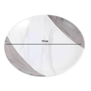 Prato em melamina com acabamento marmorizado, ideal para servir sobremesas, frutas, petiscos ou até mesmo para uso decorativo como pequena bandeja. Possui design moderno e elegante, que valoriza a mesa posta e combina com diversos estilos de decoração.Produzido em melamina de alta qualidade, é leve, resistente e fácil de limpar, sendo uma excelente opção para o uso diário em casa, festas ou eventos.Características:Material: MelaminaDiâmetro: 17 cmAcabamento: MarmorizadoCor: Branco com detalhes marmorizadosUso: Prato de sobremesa ou bandeja pequenaLeve, resistente e durávelFácil de limparNão recomendado para uso em micro-ondas.Itens Inclusos:4 Pratos para sobremesa Marca: Não Informado