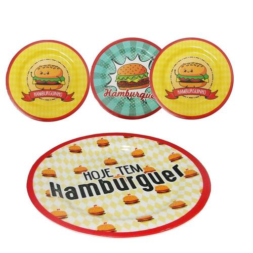 Prato Redondo de Melamina – Estampa Colorida de HambúrguerDeixe suas refeições mais divertidas com este lindo prato redondo de melamina! Com uma estampa vibrante e criativa de hambúrguer, ele é perfeito para servir lanches, refeições rápidas ou até mesmo pratos especiais com um toque de descontração.- Material: Melamina resistente e durável- Diâmetro aproximado: 20 cm- Estampa colorida e alegre- Ideal para refeições temáticas, festas ou o dia a dia- Torna sua mesa mais divertida e cheia de estilo* O ENVIO DAS ESTAMPAS SERÁ ALEATÓRIO!Itens Inclusos:4 Pratos em melamina Marca: Não Informado
