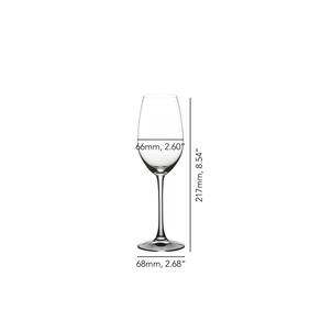 A Taça de Champanhe é perfeita para desenvolver e exibir as características complexas do champanhe. Este copo permite que uma ampla gama de aromáticos se desenvolva. Ao contrário de uma flauta, o design em forma de ovo permite que as camadas complexas cresçam e se intensifiquem, e o diâmetro maior do aro permite que elas sejam liberadas de uma forma que não é alcançada com um copo estreito. A taça também inclui um 'ponto de espumante' para auxiliar na formação das bolhas de champanhe.