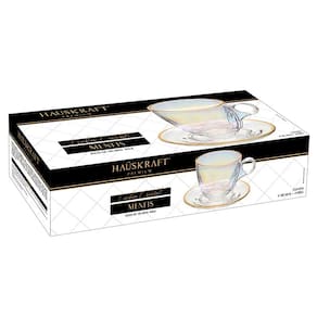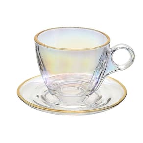 1 Conjunto 4 Xícaras de Café com Pires Borda Dourada Linha Cristal Premium Transparente 85ml JGXC091RB - Hauskraft