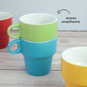 CONJUNTO 4 XICARAS PORCELANA COLORIDAS COM SUPORTE 200ML - 1044