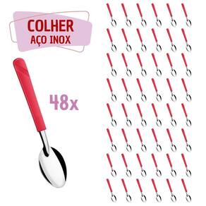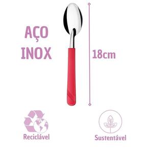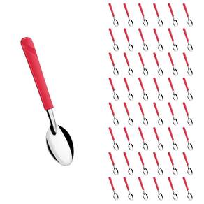 Conjunto de Colher As colheres de mesa da linha Luna são um conjunto elegante e funcional para qualquer ocasião. Com um cabo vermelho vibrante feito de plástico de alta qualidade, essas colheres são confortáveis de segurar e fáceis de identificar em meio a outros utensílios de mesa. O aço inox das colheres garante que elas permaneçam brilhantes por um longo tempo, enquanto o design elegante torna as colheres uma adição atraente à sua coleção de utensílios de cozinha.