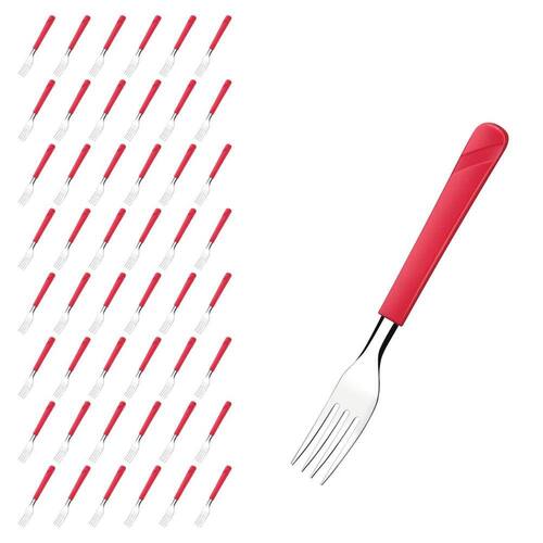 Conjunto 48 Garfos Linha Luna Vermelho Aço Inox Mesa Buffet