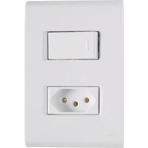 Conjunto 4x2 1 tomada 10A + 1interrup simples Tramontina O Conjunto 4x2 com 1 Interruptor Simples 10 A 250 V e 1 Tomada 2P+T 10 A 250 V Tramontina Liz Branco vai deixar sua casa muito mais completa e funcional. Produzido em termoplástico branco, ele vai garantir maior praticidade e proporcionar um acabamento perfeito entre a placa e a parede, sem deixar frestas e vincos na instalação. Além disso, possui furo oblongo que facilita a fixação e a regulagem da placa à parede e evita que ela fique desalinhada. Sua fixação não é aparente e pode ser utilizada tanto em paredes de alvenaria, quanto em paredes de madeira. A placa ainda pode ser trocada por outras cores da linha, garantindo maior versatilidade. Ean: 7891435924664