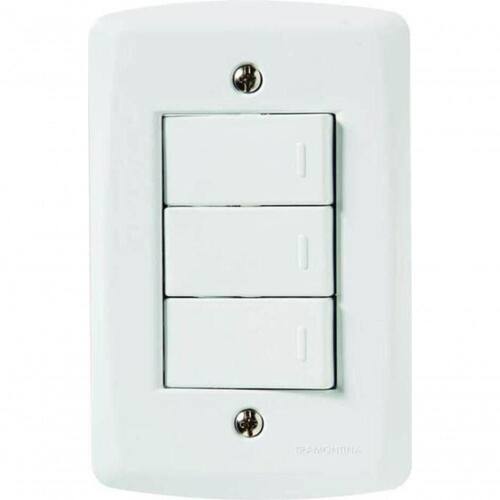 Conjunto 4x2 3 Interruptores Paralelos 10 A 250 V Tramontina Lux2 As placas e módulo da Linha Lux sãofabricados em termoplástico com acabamento brilho na cor branca , que não retémpoeira, unindo qualidade e praticidade . O sistema é modular, com gradualajuste entre a placa e o suporte , proporcionando perfeito acabamento da placacom a parede . Possuem furo oblongo para facilitar a fixação e a regulagem daplaca á parede. Além disso , possuem furos para a fixação em parede de madeira.A fixação não aparente.Acompanham suporte e parafusos para instalação.Garantiade 5 anos. Recomendações de Uso: A instalação e segurança: É importante que o produto seja instalado por profissional habilitado. Antes de instalar, desligue a energia elétrica.- Foto meramente ilustrativa Informações Adicionais: