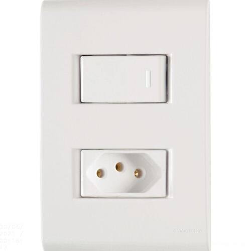 O Conjunto 4x2 com 1 Interruptor Simples 10 A 250 V e 1 Tomada 2P+T 10 A 250 V Tramontina Liz Branco vai deixar sua casa muito mais completa e funcional. Produzido em termoplástico branco, ele vai garantir maior praticidade e proporcionar um acabamento perfeito entre a placa e a parede, sem deixar frestas e vincos na instalação. Além disso, possui furo oblongo que facilita a fixação e a regulagem da placa à parede e evita que ela fique desalinhada. Sua fixação não é aparente e pode ser utilizada tanto em paredes de alvenaria, quanto em paredes de madeira. A placa ainda pode ser trocada por outras cores da linha, garantindo maior versatilidade. Deixe sua casa equipada e completa com a Tramontina! Orientações . Características Gerais EAN13 7891435044041 DUN14 17891435044048 NCM 8536.69.10 Peso Líquido 0,0750 kg. Peso Bruto 0,0810 kg. Metragem 0,000600 m³. Dimensões Embalagem (Compr. X Larg. X Alt.) 150x 100x 40 mm. Dimensões Produto (Compr. X Larg. X Alt.) 120x 83x 35 mm. Cor 1 FFFFFF Hexa Observações A instalação e segurança: É importante que o produto seja instalado por profissional habilitado. Antes de instalar, desligue a energia elétrica.