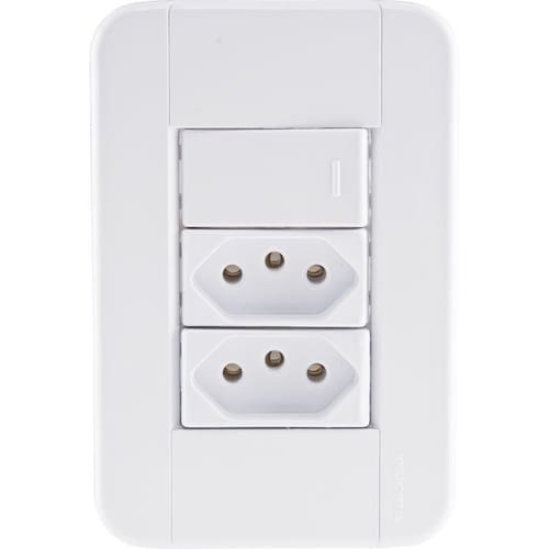 Conjunto 4x2 com 1 Interruptor Simples 10 A 250 V e 2 Tomadas 2P T 20 A 250 V Tramontina Tablet Branco