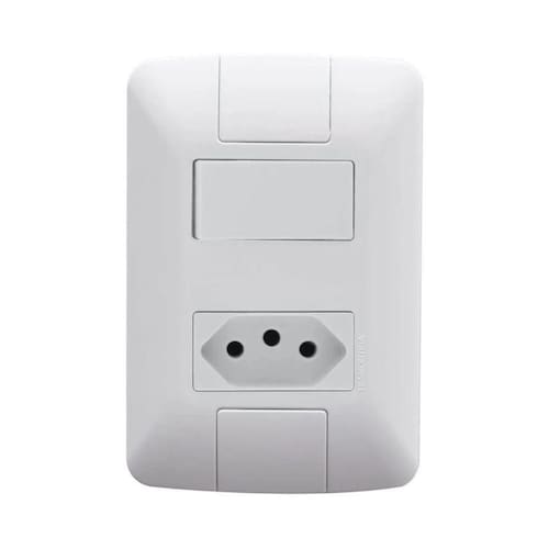 Conjunto 4x2 Com 1 Interruptor Simples 6 A 250 V E 1 Tomada 2p+t 10 A 250 V Tramontina Aria Branco DescriçãoProduto com design inovador, ideal para suas instalações elé suporte com regulagem, permitindo perfeito ajuste do conjunto à paredeFabricadas em termoplástico com acabamento brilho na cor brancaFixação não é aparenteDetalhes técnicosCorBrancoFabricanteTramontinaPeso do grTipo de materialTermoplástico