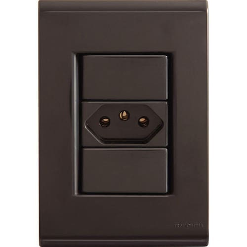 Com o conjunto 4x2 com 1 tomada 2P+T 10 A 250 V Tramontina Liz grafite você irá agregar muito mais charme e modernidade em suas instalações elétricas. Desenvolvido em termoplástico com acabamento brilho na cor grafite, ele não retém poeira e agrega muito mais qualidade na hora de ligar seus equipamentos. O sistema é modular, com gradual ajuste entre a placa e o suporte e proporciona um acabamento perfeito da placa com a parede. Sua fixação não é aparente e ele ainda conta com furo oblongo que facilita a regulagem da placa à parede, além de furos para a fixação em parede de madeira. Um item para quem cuida e preza por todos os detalhes! ;Acabamento brilho na cor grafite.