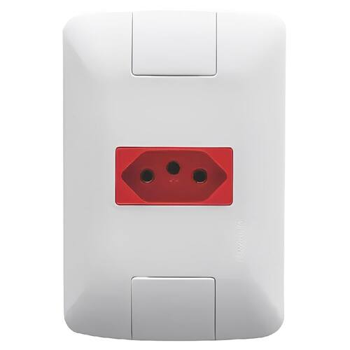 - Para ter mais eficiência na hora de ligar equipamentos elétricos ou eletrônicos, tenha em sua casa o Conjunto 4x2 com 1 Tomada 2P+T Tramontina Aria 20 A 250 V Branco e Vermelho. Produzido em termoplástico com acabamento brilho nas cores branco e vermelho, ele possui sistema modular com o suporte incorporado e furo oblongo que facilita a fixação e a regulagem da placa à parede, deixando-a reta; além disso, sua instalação não fica aparente, o que deixa seu cômodo ainda mais bonito. Um item ideal para sua casa, que acompanha suporte e parafusos para a instalação.