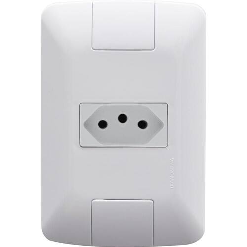 Conjunto 4x2 Com 1 Tomada 2p+t Tramontina Aria 10 A 250 V Branco Conjunto 4x2 com 1 Tomada 2P T Tramontina Aria 10 A 250 V Branco Para ter mais eficiência na hora de ligar equipamentos elétricos ou eletrônicos, tenha em sua casa o Conjunto 4x2 com 1 Tomada 2P T Tramontina Aria 10 A 250 V Branco. Produzido em termoplástico com acabamento brilho na cor branca, ele possui sistema modular com o suporte incorporado e furo oblongo que facilita a fixação e a regulagem da placa à parede, deixando-a reta; além disso, sua instalação não fica aparente, o que deixa seu cômodo ainda mais bonito. Um item ideal para sua casa, que acompanha suporte e parafusos para a instalação!