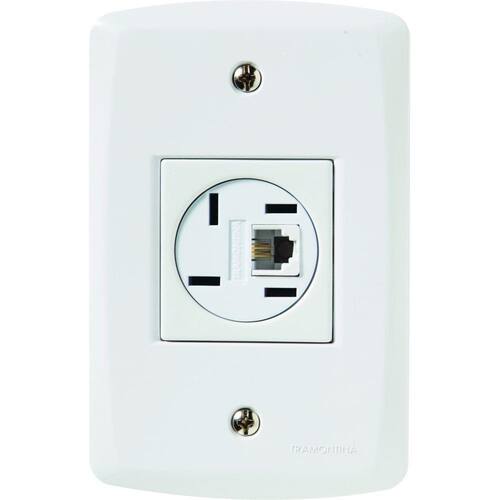 Para deixar sua instalação telefônica muito mais eficiente, utilize o Conjunto 4x2 com 1 Tomada Telefone 4P e RJ11 Tramontina Lux2 Branco! Produzido em termoplástico na cor branca com acabamento em brilho, ele vai agregar funcionalidade nos ambientes onde for inserido. Sua instalação é muito simples, pois tem sistema modular onde a placa possui suporte incorporado, além de acompanhar parafusos adequados para sua fixação. Com a Tramontina, você tem as melhores escolhas para sua casa! Orientações . Observações A instalação e segurança: É importante que o produto seja instalado por profissional habilitado. Antes de instalar, desligue a energia elétrica. Características Gerais EAN13 7891435043082 DUN14 17891435043089 NCM 8536.90.90 Peso Líquido 0,0520 kg. Peso Bruto 0,0580 kg. Metragem 0,000600 m³. Dimensões Embalagem (Compr. X Larg. X Alt.) 150x 100x 40 mm. Dimensões Produto (Compr. X Larg. X Alt.) 122x 79x 35 mm. Cor 1 FFFFFF Hexa
