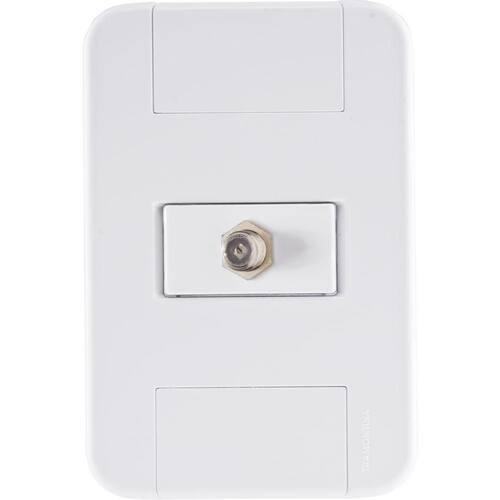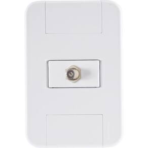 Conjunto 4x2 Com 1 Tomada Tv/sat Coaxial Tramontina Tablet Branco Conjunto 4x2 com 1 Tomada TV/SAT Coaxial Tramontina Tablet Branco Para conectar sua televisão com o receptor da TV a cabo, utilize o Conjunto 4x2 com 1 Tomada TV/SAT Coaxial Tramontina Tablet Branco. Produzido em termoplástico com acabamento brilho na cor branca, ele possui sistema modular com o suporte incorporado e furo oblongo que facilita a fixação e a regulagem da placa à parede, deixando-a reta; além disso, sua instalação não fica aparente, o que deixa seu cômodo ainda mais bonito. O conjunto perfeito para sua casa e que acompanha parafusos para a instalação.
