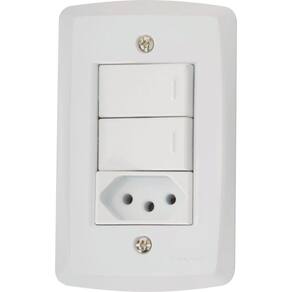 Conjunto 4x2 com 2 Interruptores Paralelos 10 A 250 V e 1 Tomada 2P T 20 A 250 V Tramontina Lux2 Branco