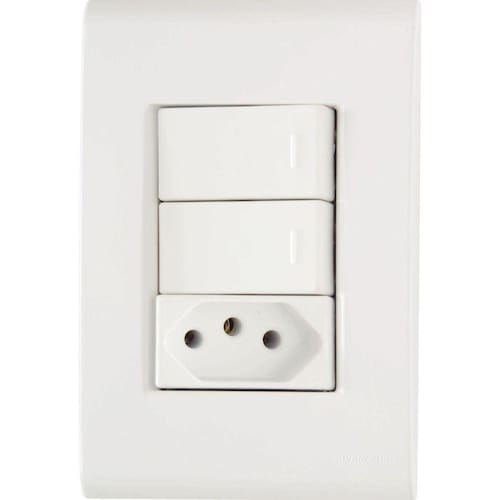 O Conjunto 4x2 com 2 Interruptores Simples 10 A 250 V e 1 Tomada 2P+T 10 A 250 V Tramontina Liz Branco é a escolha perfeita para fazer parte dos projetos da sua casa. Produzido em termoplástico branco, ele vai garantir maior praticidade e proporcionar um acabamento perfeito entre a placa e a parede, sem deixar frestas e vincos na instalação. Além disso, possui furo oblongo que facilita a fixação e a regulagem da placa à parede e evita que ela fique desalinhada. Sua fixação não é aparente e pode ser utilizada tanto em paredes de alvenaria, quanto em paredes de madeira. A placa ainda pode ser trocada por outras cores da linha, garantindo maior versatilidade. A escolha perfeita para compor seus ambientes, com muito mais estilo!