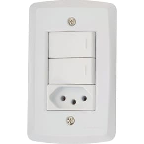 Conjunto 4x2 com 2 Interruptores Simples 10 A 250 V e 1 Tomada 2P+T 10 A 250 V Tramontina Lux2 Branco