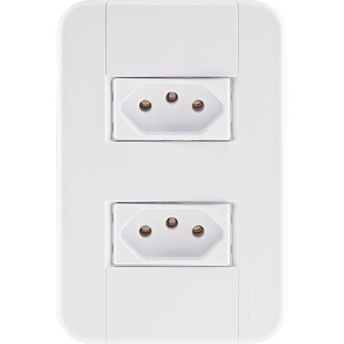 Conjunto 4x2 com 2 Tomadas 2P+T 20 A 250 V Tramontina Tablet Branco Com o Conjunto 4x2 com 2 Tomadas 2P+T 20 A 250 V Tramontina Tablet Branco você terá mais praticidade na hora de ligar mais de um equipamento elétrico ou eletrônico ao mesmo tempo. Produzido em termoplástico com acabamento brilho na cor branca, ele possui sistema modular com o suporte incorporado e furo oblongo que facilita a fixação e a regulagem da placa à parede, deixando-a reta; além disso, sua instalação não fica aparente, o que deixa seu cômodo ainda mais bonito. O conjunto perfeito para sua casa e que acompanha parafusos para a instalação.