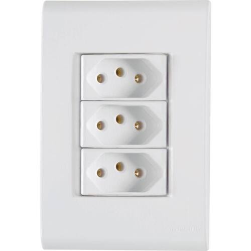 Conjunto 4x2 Com 3 Tomadas 2p+t 20 A 250 V Tramontina Liz Branco Conjunto 4x2 com 3 Tomadas 2P T 20 A 250 V Tramontina Liz Branco O Conjunto 4x2 com 3 Tomadas 2P T 20 A 250 V Tramontina Liz Branco vai deixar sua casa muito mais funcional e pronta para conectar múltiplos aparelhos elétricos e eletrônicos. Produzido em termoplástico branco, ele vai garantir maior praticidade e proporcionar um acabamento perfeito entre a placa e a parede, sem deixar frestas e vincos na instalação. Além disso, possui furo oblongo que facilita a fixação e a regulagem da placa à parede e evita que ela fique desalinhada. Sua fixação não é aparente e pode ser utilizada tanto em paredes de alvenaria, quanto em paredes de madeira. A placa ainda pode ser trocada por outras cores da linha, garantindo maior versatilidade. Deixe sua casa equipada e completa com a Tramontina!