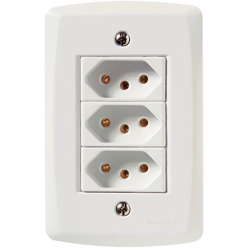 O Conjunto 4x2 com 3 Tomadas 2P+T 20 A 250 V Tramontina Lux2 Branco vai deixar sua casa muito mais funcional e pronta para conectar múltiplos aparelhos elétricos e eletrônicos. Produzido em termoplástico na cor branca com acabamento em brilho, ele vai agregar funcionalidade nos ambientes onde for inserido. Sua instalação é muito simples, pois tem sistema modular onde a placa possui suporte incorporado, além de acompanhar parafusos adequados para sua fixação. Com a Tramontina, você tem as melhores escolhas para sua casa! Orientações . Observações A instalação e segurança: É importante que o produto seja instalado por profissional habilitado. Antes de instalar, desligue a energia elétrica. Características Gerais EAN13 7891435055023 DUN14 17891435055020 NCM 8536.69.10 Peso Líquido 0,0900 kg. Peso Bruto 0,0980 kg. Metragem 0,000600 m³. Dimensões Embalagem (Compr. X Larg. X Alt.) 150x 100x 40 mm. Dimensões Produto (Compr. X Larg. X Alt.) 122x 79x 42 mm. Cor 1 FFFFFF Hexa
