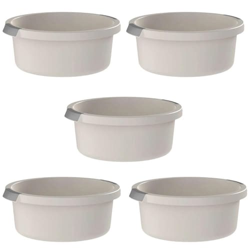 Conjunto 5 Bacias 5L Flow Pega Ergonômica Bege Resistente OU para Cozinha e Lavanderia.