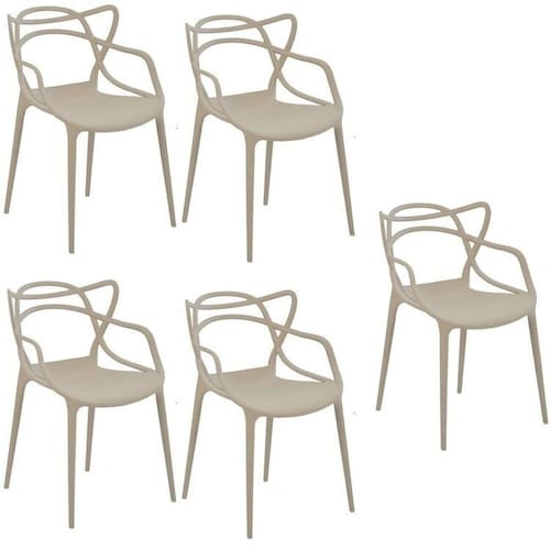 Conjunto com 8 cadeiras injetadas em peça única, com quatro pernas de apoio e sapatas incolores. Encosto vasado com assento inteiro abaulado. Empilhável. Possui certificação do Inmetro. Acabamento: Polipropileno Altura do Conjunto: 82.5 cm Ambiente: Sala de Jantar Ambiente Principal: Sala de Jantar Cor: Nude Informação Complementar: 5x Cadeira Polipropileno Allegra Nude Largura: 53 cm Altura: 82,5 cm Peso: 4,5 kg Profundidade: 57 cm Necessita Montagem: Não