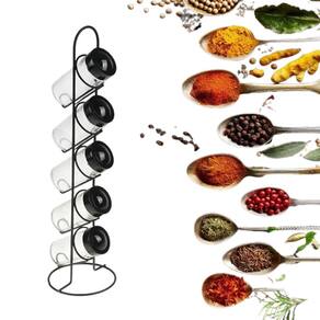 Praticidade no Uso: Os potes de vidro permitem visualizar facilmente o conteúdo, enquanto o suporte garante que fiquem firmemente posicionados, facilitando o acesso e a conveniência. Conjunto 5 Condimenteiros de Inox com Suporte Organização