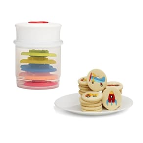 O kit de cortadores para massa Meios de Transporte da Chef'n é um conjunto de dois cortadores sem componentes metálicos.