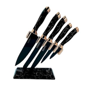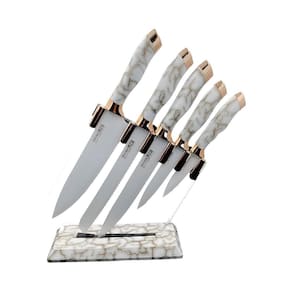Conjunto 5 Facas Mármore Com Suporte Branco Antiaderente