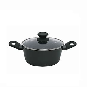 A linha Mármol Cook possui 3 camadas, 2 camadas de revestimento cerâmico e 1 camada resistente a alta temperatura. Com estrutura de alumínio as panelas possuem 4mm de espessura que proporciona uma maior durabilidade do produto, como também mais uniformidade térmica, cozinhando os alimentos de maneira uniforme, sem variações de temperatura. Sem contar que elas também mantêm o calor por mais tempo mesmo fora do fogo, possibilitando refeições aquecidas até mesmo à mesa. Com revestimento soft-touch, toque super macio, em seus cabos e alças, confortável ao segurar e previne queimaduras. Disponível em 2 cores, com estética diferente para todos os gostos.