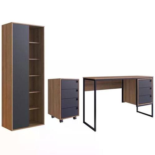 Conjunto para Escritorio 03 Peças, possui destaques versáteis, que proporciona um estilo ideal para deixar o ambiente ainda mais moderno. Estrutura em MDP de 15mm, que proporciona melhor acabamento nas bordas e superfícies, contando com pintura Finish Foil (Fosco) que também é conhecido como FF atendendo a todos os requisitos de qualidade e durabilidade. O conjunto é composto por um livreiro com 01 porta de correr, 05 prateleiras, possui pés com sapatas plásticas e estrutura que suporta até 20kg, uma mesa composta por tampo em MDP 15mm seguindo as tendências de decoração mais atuais, base totalmente reforçada em metal de 15mm, 03 gavetas com corrediças metálicas, puxadores plásticos, conta com sapatas plásticas, tornando o móvel ainda mais resistente, e um gaveteiro com 04 gavetas com corrediças metálicas que suportam até 5 kg cada, tampo superior suporta até 10 kg, acompanha 04 rodízios. É a escolha certa para você que quer complementar seu mobiliário, tornando o ambiente em que estiver muito mais moderno. Fácil de montar e com acabamento office que deixa o móvel ainda mais elegante. Estes móveis chegarão em sua casa separados em 03 volumes.